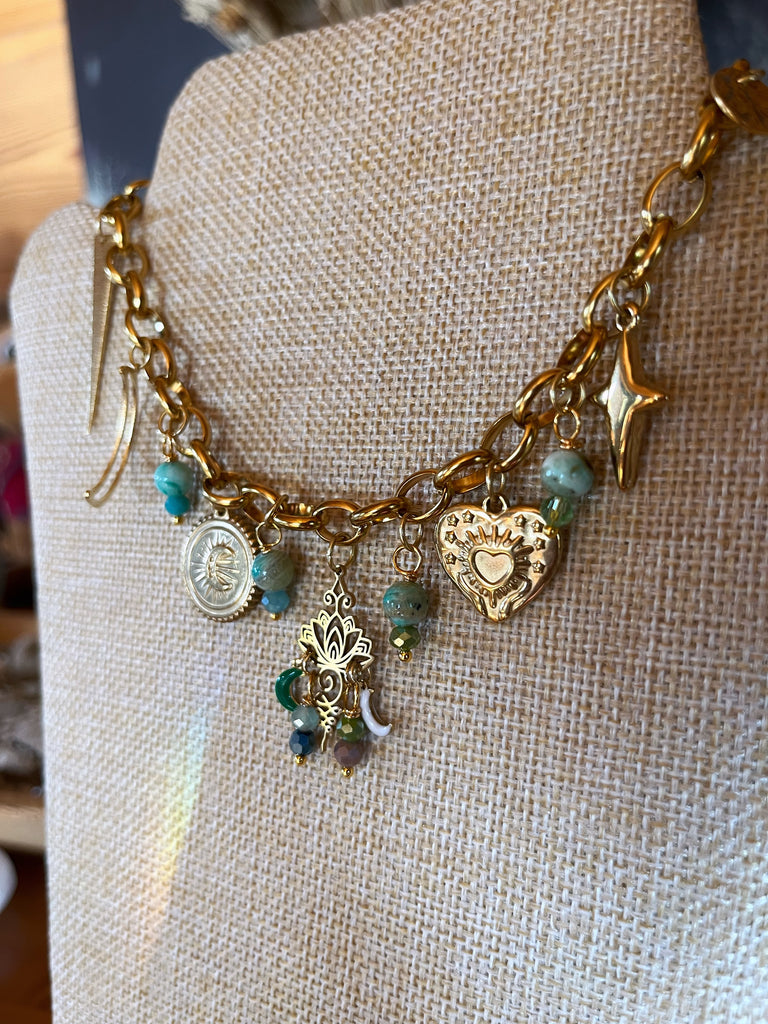 ✨ Collier “Éveil du Lotus” – Acier inoxydable & calcite verte ✨
