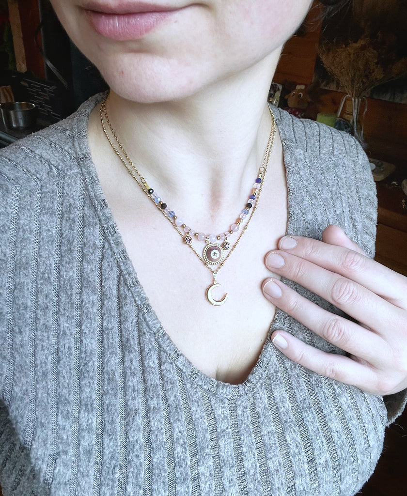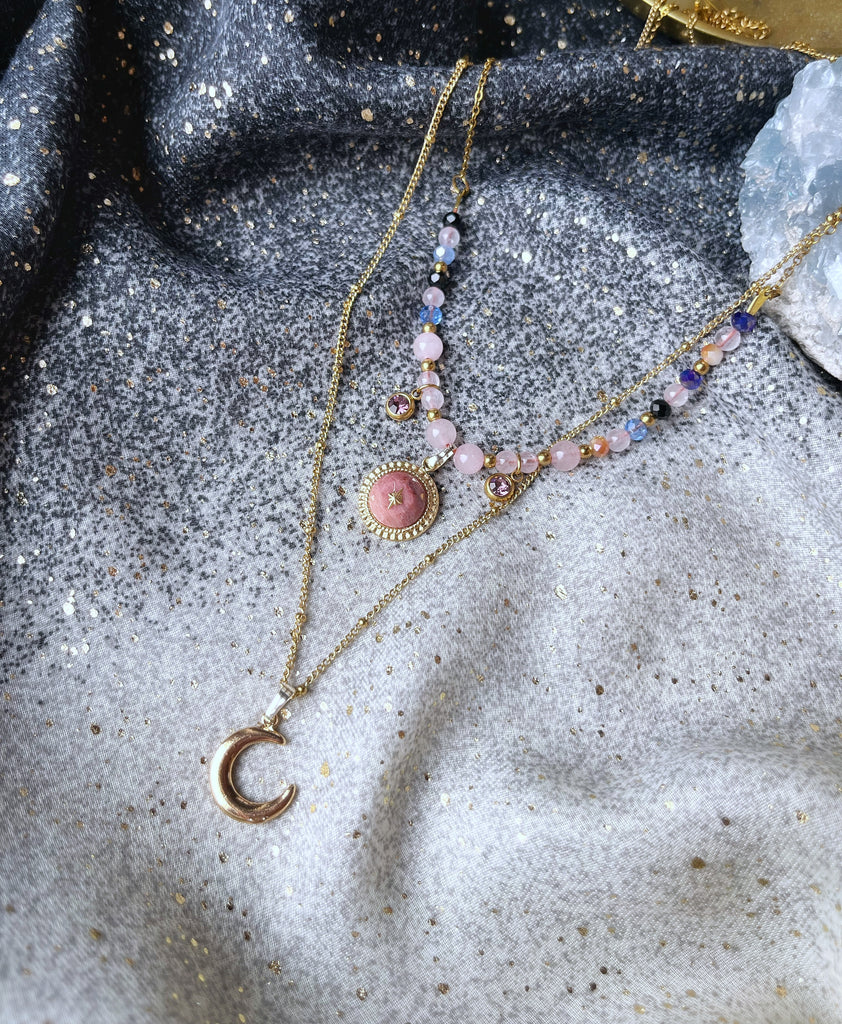 Pendentif : médaillon rhodonite et lune